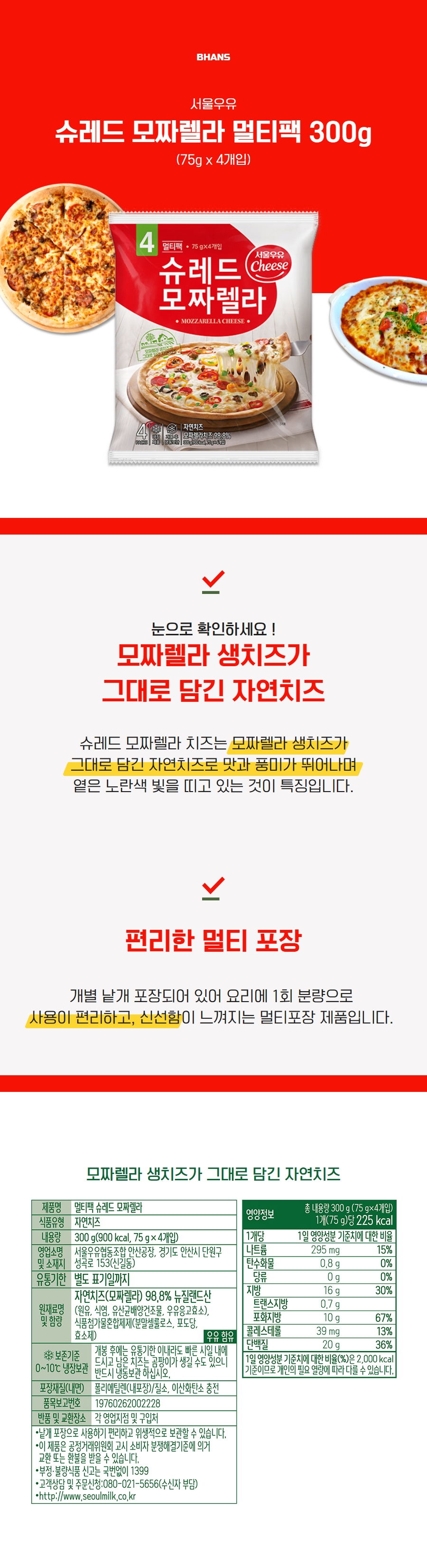> [임박상품] 서울우유 슈레드모짜렐라 멀티팩 300g - 유통기한 26년 4월 07일까지
